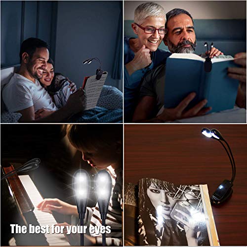 Music Stand Light, Clip on LED Book Lights, USB and AAA Battery Operated, Reading Lamp in Bed, 4 Brightness Levels, ideal for Bookworms, Piano Player, Kids, Travel (Dual Arm)
