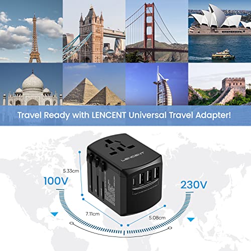 LENCENT Universal Travel Adapter, International Charger with 3 USB Ports and Type-C PD Fast Charging Adaptor for iPhone, Samsung, Tablet, Gopro. for Over 200 Countries Type A/C/G/I (USA, UK, EU AUS)