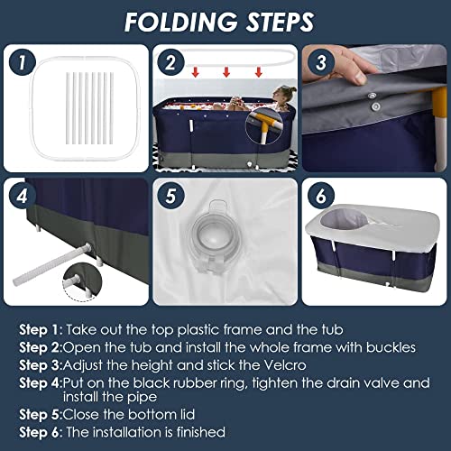 MATHOWAL Portable Bathtub, Foldable Bathtub, Bathtub for Adults, Bathtub with Water Filling Cushion and Backrest, Suitable for Hot Water Bath and Ice Bath (Dark Blue) Item Sku: