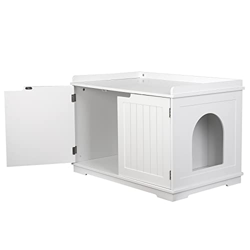 ZENY Cat Litter Box Enclosure, Cat Litter Box Furniture Hidden, Wooden Cat Litter Cabinet with Divider, Modern Cat Washroom Storage Bench,Fit Most of Litter Box, White, Large