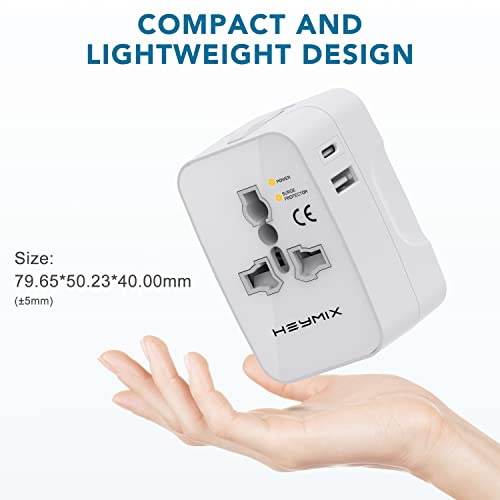 HEYMIX PROFESSIONAL Heymix International Power Adapter, Universal Travel Adapter USB C, World Travel Power Plug With USB, All In One Travel Plug Adapter For EU/US/UK/India/Bali To AUS Compatible With Iphone/Sumsang/Pixel, White, 1-Pack Item Sku: