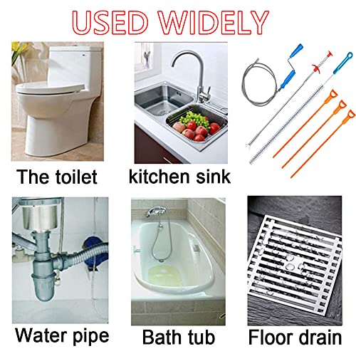 QOOWFEANIG Hair Drain Clog Remover Drain Relief Auger, 6 in 1 Sink Snake Sewer Dredging Tool,Drain Auger Sewer Toilet Dredge,Sink Dredge Drain Clog Remover Paw,Drain Cleaning Brush Hair Clog Remover Tool